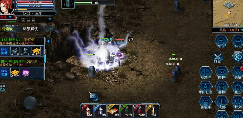 30级解锁悬赏任务和破晓试炼后,升级重心转移。悬赏任务优先选择橙色品质,其次紫色,每日5次刷新机会全部用完,可获得海量经验与强化石;破晓试炼每日挑战2次,从简单难度逐步提升,副本内5波怪物经验递增,最终BOSS掉落的“经验水晶”可直接获得10万经验,挑战前记得穿戴微光套装并携带足量回血药。