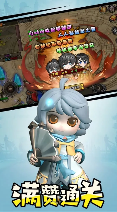 2、角色拥有丰富多样的动态表情与夸张的战斗动作,提升游戏趣味性,例如战士挥剑时配有“嘿哈”音效,法师施法时伴随彩虹特效。