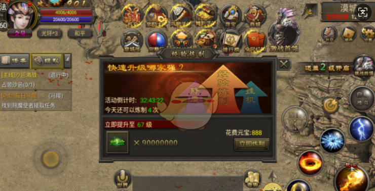 4、经验炼制功能,花费一定的元宝可以快速升级。