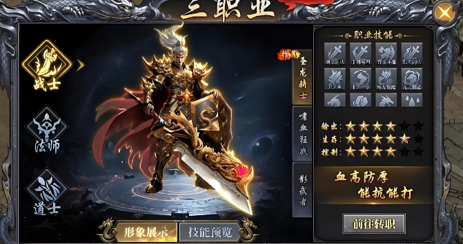 战士:高防御与血量,能承受大量伤害,输出爆发力强。