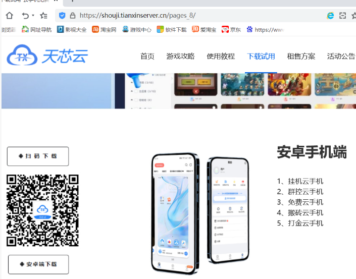 1.进入天芯云手机官网下载,或者在手机应用市场搜索下载,根据自己的手机版本来下载,安卓手机下载“安卓版”,苹果手机下载“苹果版”,建议使用“安卓版”。