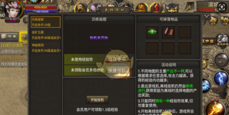 5、最后玩累了可以使用离线挂机,不在线也可以获得大量经验。