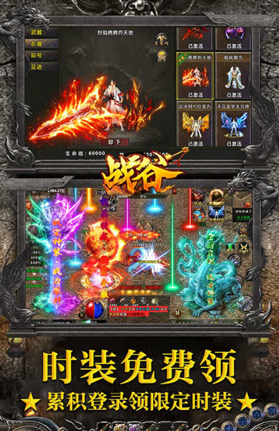 《战谷》传奇手游是一款全新的单职业复古传奇手游,深度还原经典传奇的核心玩法与设定,致力于为玩家呈现原汁原味的传奇体验。游戏不仅拥有精致细腻的画面、宏大壮阔的世界观、华丽独特的人物造型以及炫酷震撼的技能特效,还对多项内容进行了优化升级,大幅提升了玩家的操作流畅度与游戏体验感。在玩法上,游戏延续了“装备全靠打”的经典模式,BOSS挑战不间断,支持轻松挂机解放双手;更创新性地推出全能单职业,将传统战法道三大职业的核心技能融为一体,搭配闪耀炫目的专属装备与全屏炸裂的绝技特效,让玩家与兄弟并肩作战时能尽情释放激情,在玛法大陆上纵横驰骋、大杀四方。