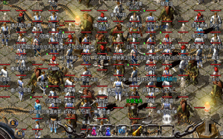 随着铛的一声,玛法大门打开,比奇省新手村瞬间被杀鸡宰鹿等怪物的惨叫声笼罩,传送到盟重土城差点都踩不到安全区的边线了,这人气是有多火爆?还有僵尸洞、沃玛寺庙里那繁忙的组队砍怪的场面……历历在目!
