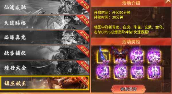 挖宝、世界BOSS(每日12点刷新,掉落坐骑魂等)