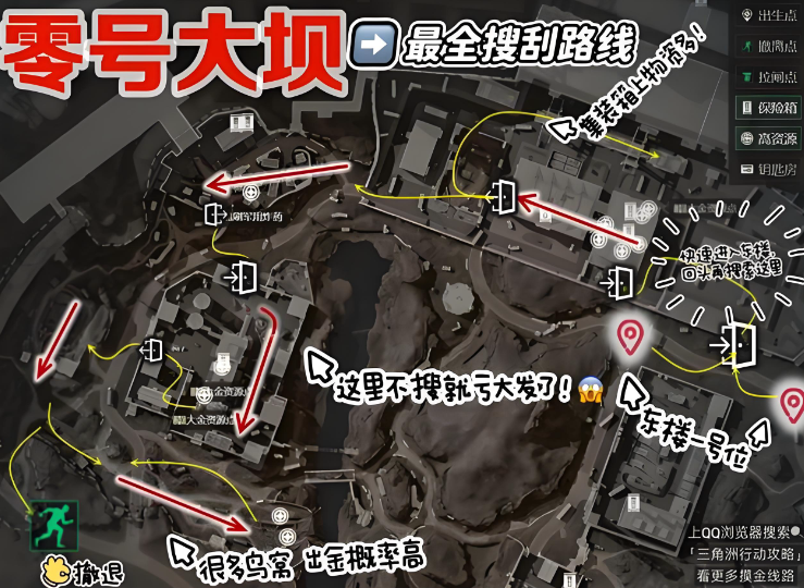 危险行动模式(单人/组队):其中高价值点位包括水泥厂地下金库(必刷保险箱)、大坝22号协议箱(固定出金)、长弓溪谷鸟窝(隐藏紫材)。路线规划:水泥厂→军营→主楼→撤离点,20分钟单趟收益约80-150万。