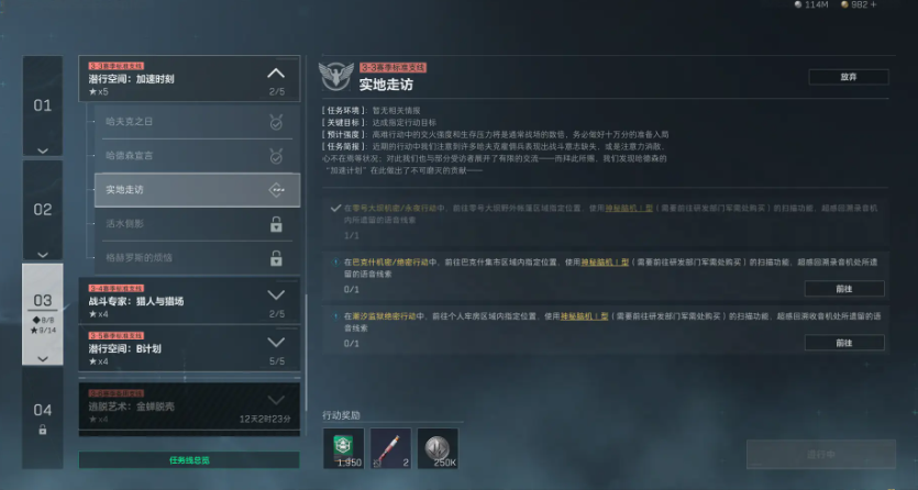 三角洲行动s8赛季第三阶段支线实地走访任务目标: