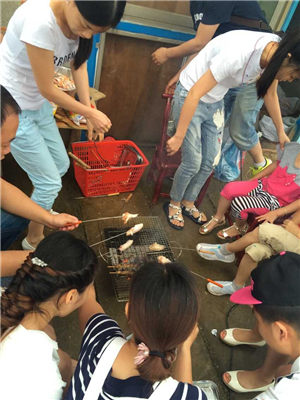 上午9点大家带好准备好的物品,驱车赶往目的地,大约半个小时,队伍到达目的地。中午大家很惬意的钓钓鱼,唱唱歌,打打台球,午饭后大家有的打麻将,有的玩扑克,下午4点半大家开始了本次活动的主题项目---烧烤。大家火速分工,有的生火,有的穿肉,.......忙的不意乐乎,各自拿出了自己“十八班武艺”,烤鸡翅,烤肉串,烤鱼。虽然偶有焦黑,但是多数情况下,还是“合格产品。大家所烤出来的鸡翅,外焦里嫩,香甜可口,尽管大家热的满头大汗,当品尝着自己的劳动成果时,大家都觉得味道非常好。大家争着、抢着,都想露一手,画面是如此的自然、和谐,卸去了往日的工作压力,有的只是那一张张开心的笑脸。