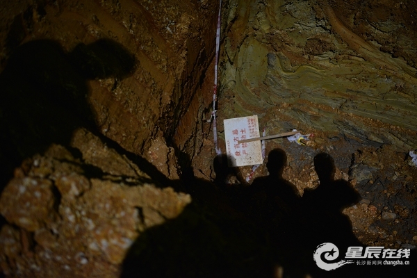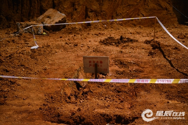 记者来到现场时,新发现的古墓遗址现场已经围起了警戒线。墓坑中央,还残留着工作人员用锄头勘探出来的古墓形状。据预计,新古墓的长度将近2米,边缘的白膏泥清晰可见。记者在现场也并未看到有盗墓者留下的痕迹。不过对于古墓的大小、规模,周姓工作人员表示明后两天考古所还将进一步的进行勘探。不过,并不排除此处还有更多古墓发现的可能。