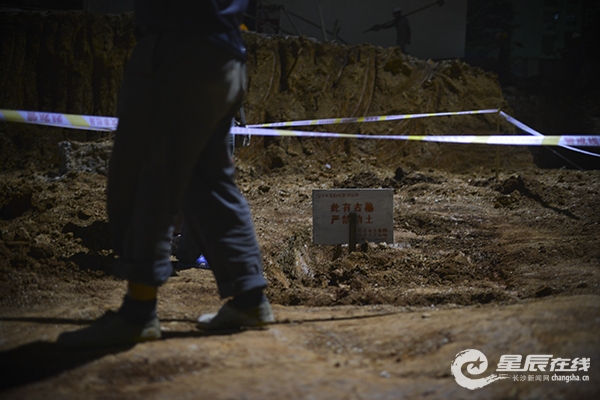 (9月15日晚20时许,长沙开福区陡岭路附近一处建筑工地挖掘出一处古墓遗址已被警戒线保护起来。考古队员们在工地上紧急清理文物,仅造册登记记录的序号,即达40余号,当晚收集包装入库的文物约20余件。均为星辰全媒体记者 黄启晴/摄)