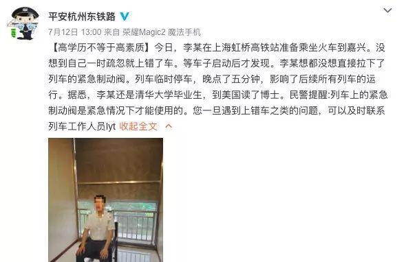 据了解,7月12日,李某打算乘坐G1337次列车从上海虹桥站去往嘉兴南站,因赶车忙中出错,误上了G7325次列车,上车后才发现自己坐错车了。